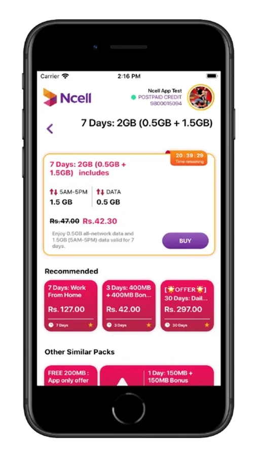 - Buy Data and Voice Packs and get recommendation