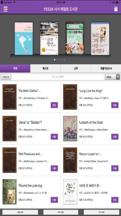 1. YES24 전자도서관 iOS 어플리케이션입니다.