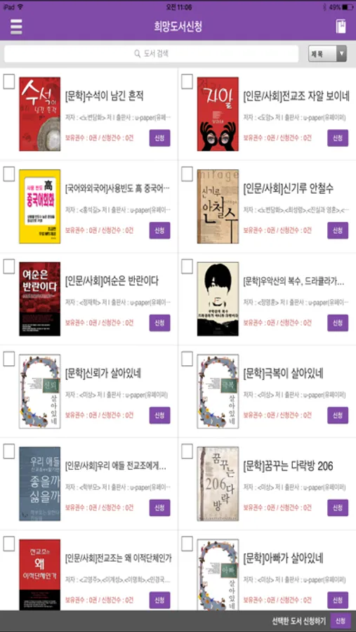 5. 도서관에서 운영하고 있는 전자도서관과 동기화 되어 있습니다.