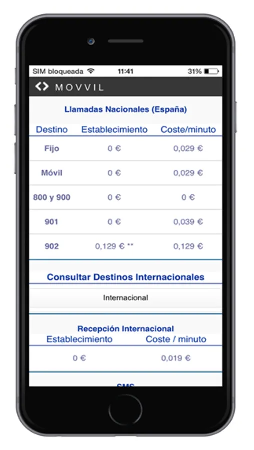 Llamadas Internacionales : Establecimiento 0, Tarificación por segundos, Coste según destino, consultar en la app en el apartado Tarifas.