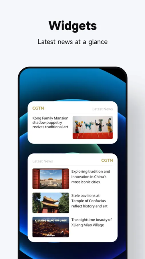 The latest version of the CGTN app supports five languages: English, Spanish, French, Arabic and Russian. It features a wide array of original content, including breaking news, in-depth stories and livestreams. The app also hosts a comprehensive archive of original articles, audio, video, and TV shows covering topics across politics, business, technology, science, sports, nature, culture and others. It gives you access to all the trusted information you need on the go.