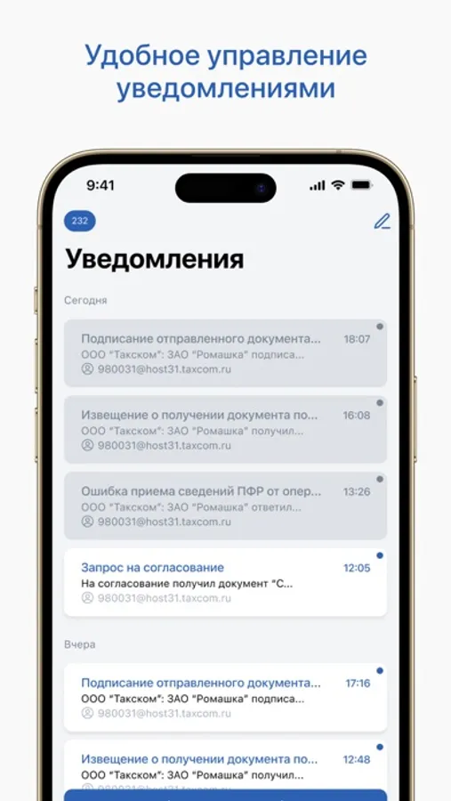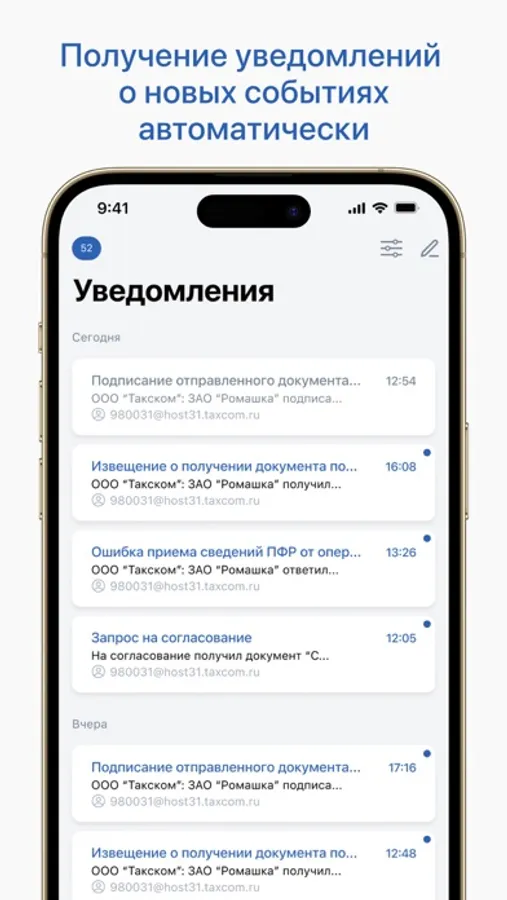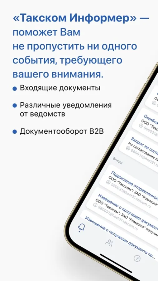 Приложение позволяет оперативно получать уведомления о входящих документах от налоговых инспекций на вашем смартфоне.