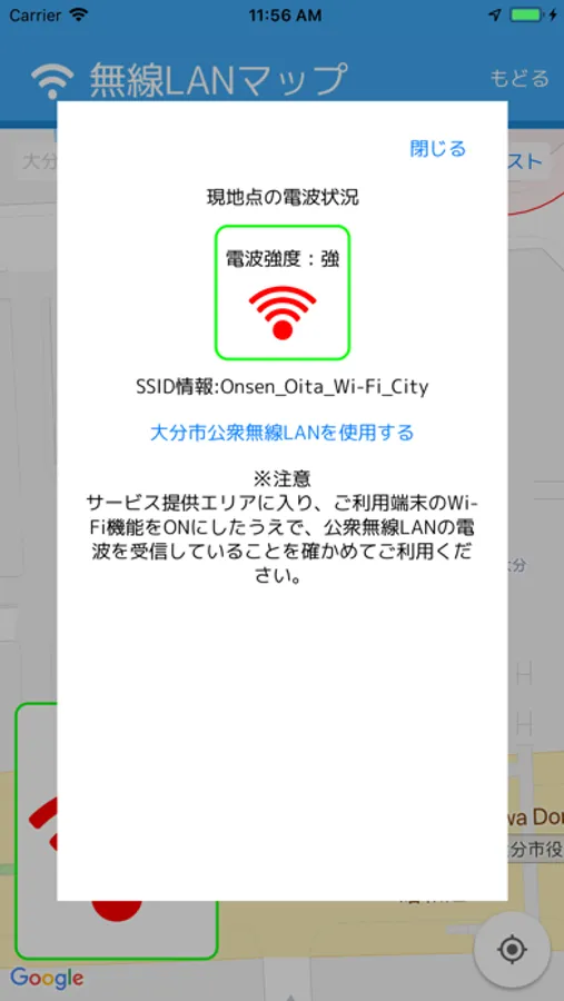 You can easily find the nearest wireless LAN from the current location on the map, and you can connect to the wireless LAN by entering the displayed area.