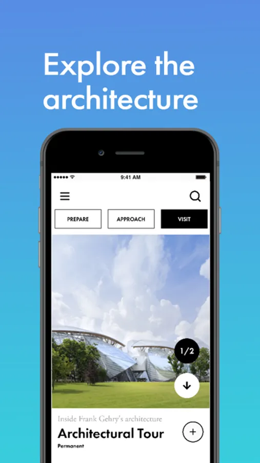 The official application "Fondation Louis Vuitton" takes you on a journey inside this parisian building dedicated to contemporary art.