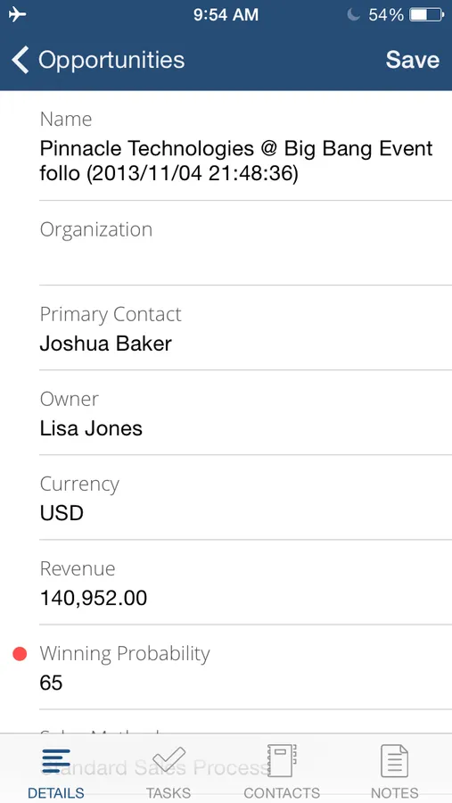 Access Oracle Sales Cloud CRM Accounts, Contacts, Opportunities, Tasks and Notes with or without network connectivity: