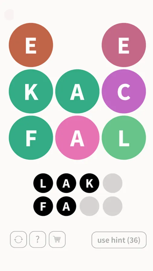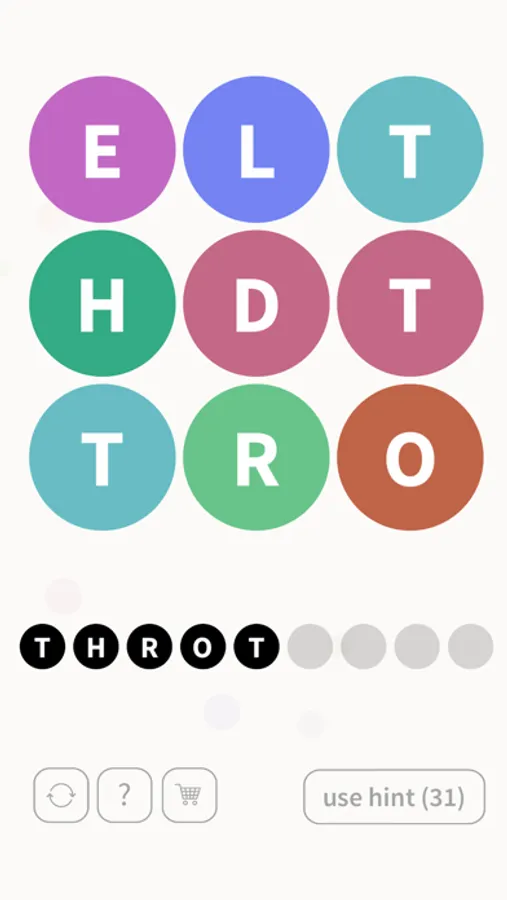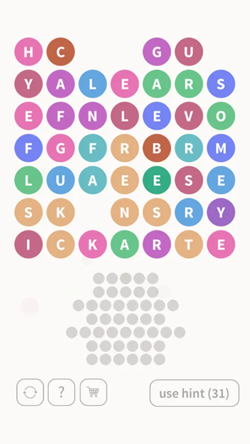 IMPORTANT: some users claim there is a bug in the game. It’s not! If you can’t connect the letters it’s because you have solved the words in the wrong order! The solution? Restart the level by tapping the reset-button in the lower left corner, and try to solve the words in a new order! Good luck!