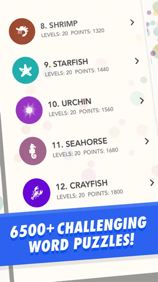 - WordBubbles offers more than 2 700 levels, from easy to difficult!