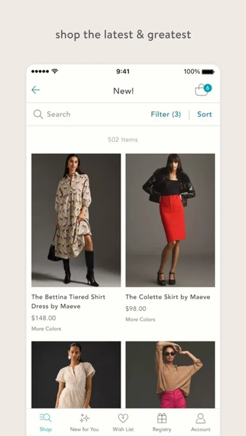 Shop – Gain access to Anthropologie’s newest arrivals and exclusive collections. Enjoy an effortless shopping experience through our product assortment with enhanced search and express checkout features.
