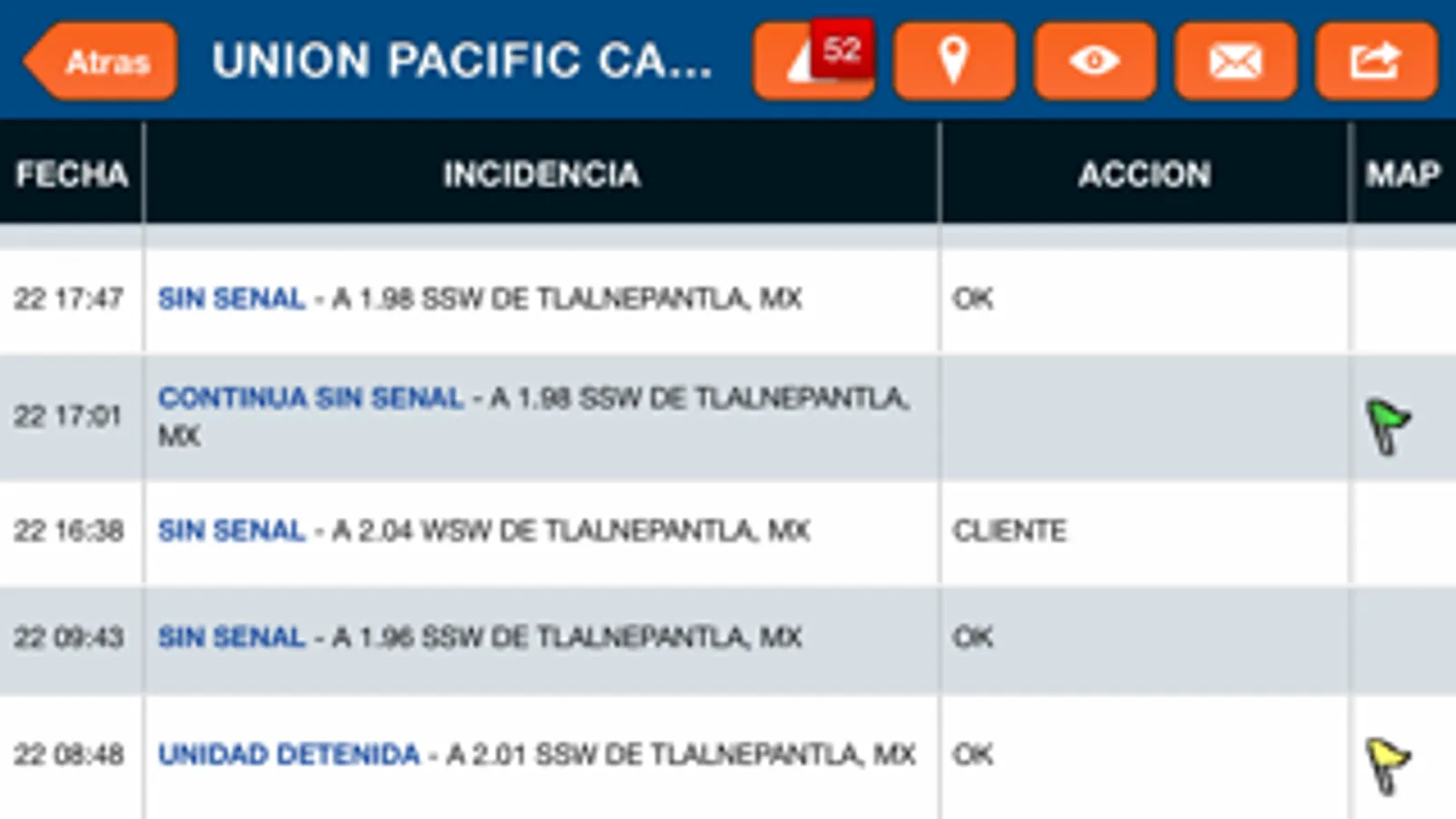 Catálogo de Incidencias (Sin señal, Fuera de Ruta, detenido)
