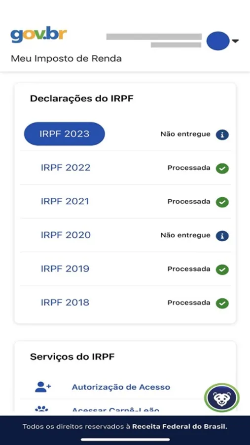 Se conta com nível ouro ou prata, acesso a todos os serviços, inclusive relativos a declarações de anos anteriores: