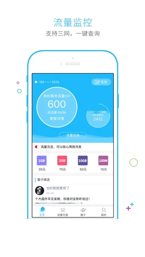 2.流量提醒:准确流量预警,帮助您及时避免流量超额;