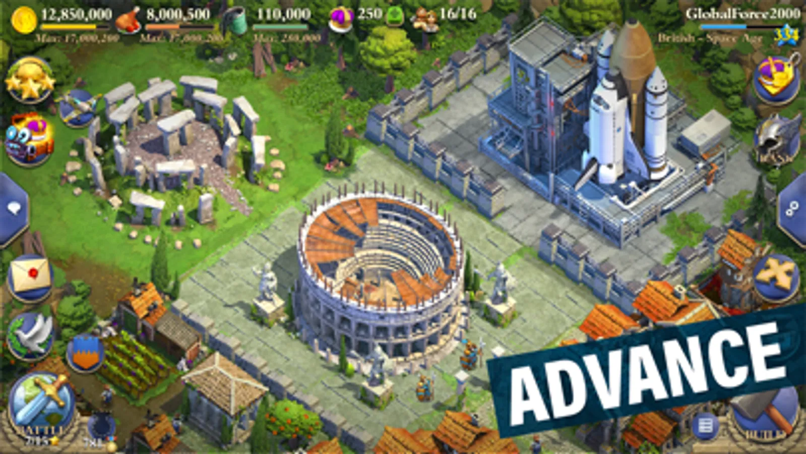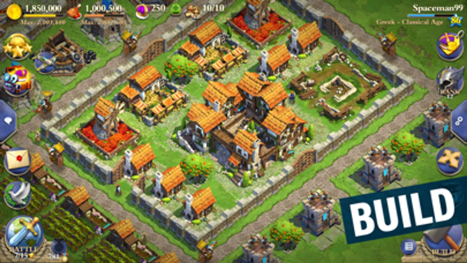 Start as an early settlement and grow through the ages, from the dawn of history to the modern era. Study under history’s greats at the University, like Leonardo Da Vinci and Catherine the Great. Build Wonders of the World and create technology with historically accurate advancements. Build your base and strengthen your defenses with the Council. Assign historical figures across time to your council, strengthen your defenses, bolster attacks and strengthen your base during war times with appointed Councilors.