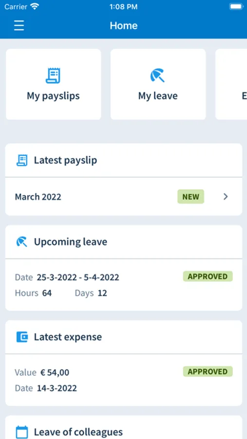 With this app, you always have access to your payslips, leave requests, expense declarations and more. What can you do: