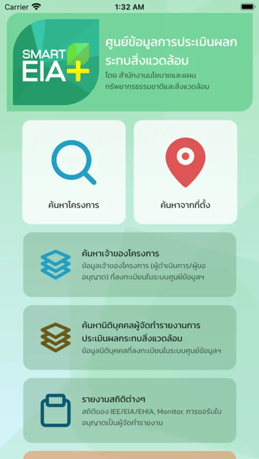 Smart EIA Plus is a mobile application that use to search for Environmental Impact Assessment or EIA projects approved by the Office of Natural Resources and Environment.