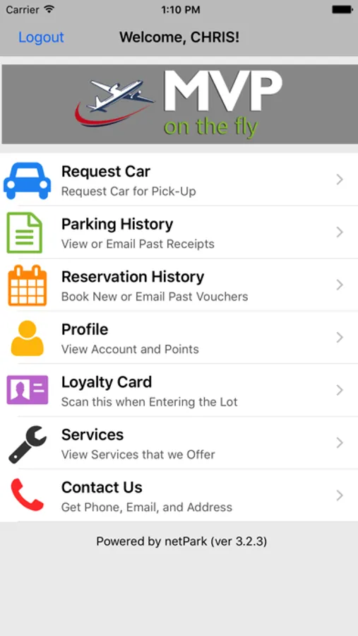 Customer portal for access to MVP Airport Parking located at SeaTac International Airport in Seatac, WA, providing:
