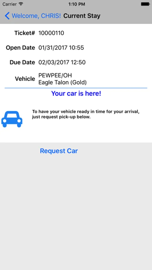 1. Automated vehicle retrieval request for One Touch Pick-Up service