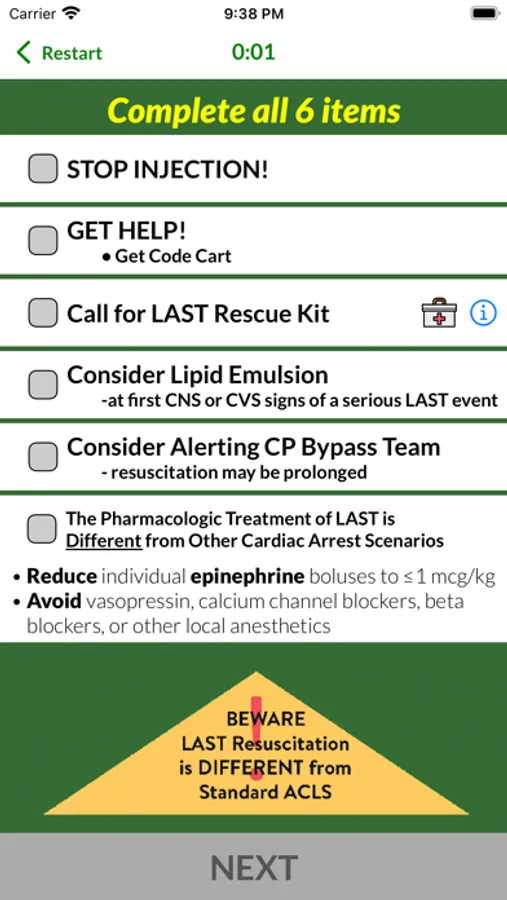 The ASRA LAST app facilitates the use of the ASRA Checklist for Treatment of Local Anesthetic Systemic Toxicity during real time patient events or simulation training. Not only do we focus on the dosing and timing of lipid emulsion for a LAST event, but we ensure that providers don’t forget critical ACLS steps as they are integrated into this modified treatment algorithm. This app was built with collaboration from the ASRA Board and Dr. Guy Weinberg, the pioneer and expert in lipid emulsion treatment for local anesthetic toxicity and director of LipidRescue.