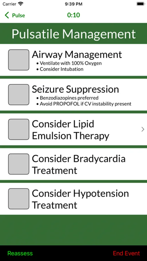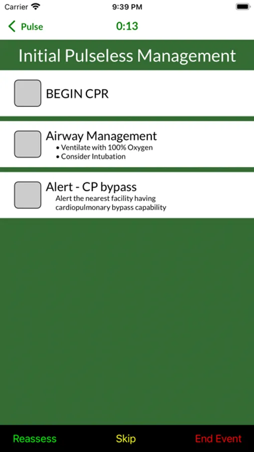 • Cyclically timed reminders for Pulse Recheck, CPR, drug dosing, and more.
