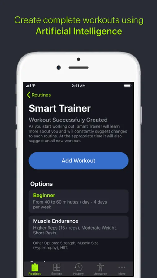 ● Don't want to use our Artificial Intelligence to create your workouts? That's fine! You can also access over 130 pre-made workouts, carefully created by professionals and curated for you.