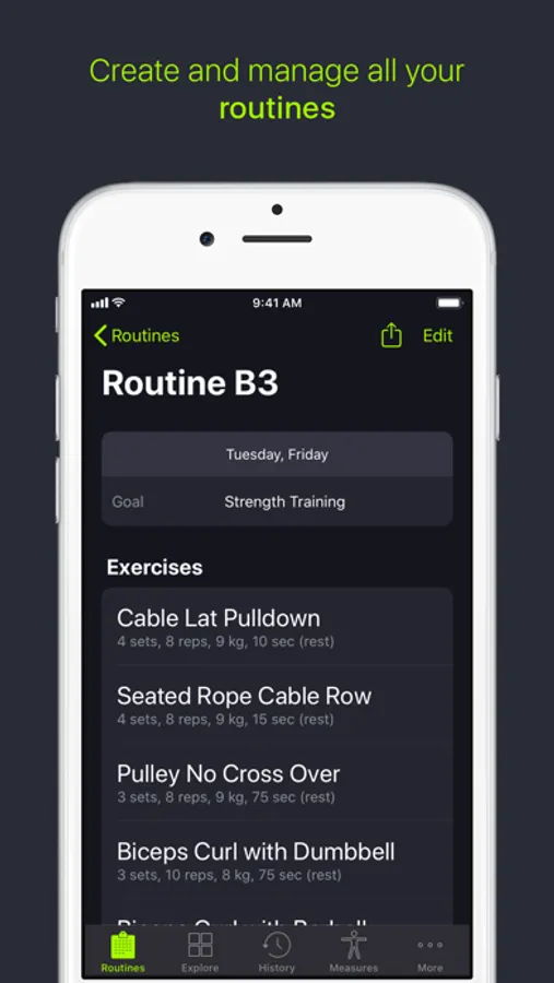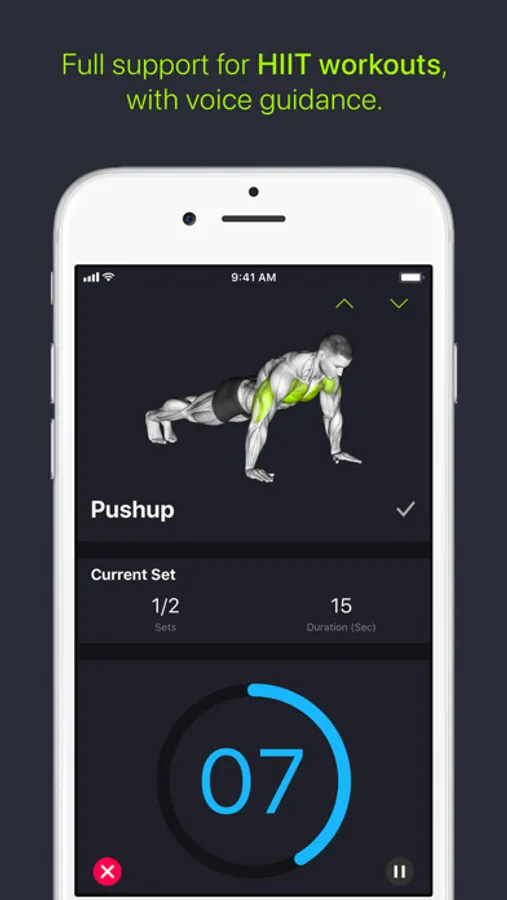 ● Choose from over 620 pre-installed exercises with images and animations, ranging from bodyweight to dumbbells, kettlebells, resistance bands, and more. And if you don't find the one you're looking for, you can always add your own custom exercises with your own images.