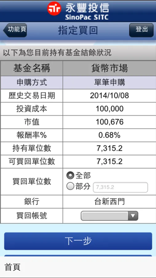 執行買回基金功能時,如果同一檔基金多筆買回至同一帳戶時,僅收一筆匯費,為投資人省荷包。