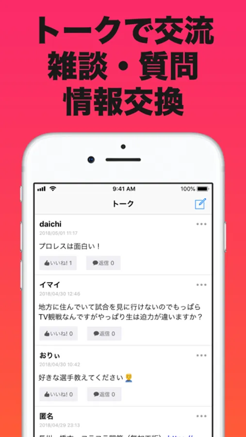 ・プロレスについて雑談して交流することができます。