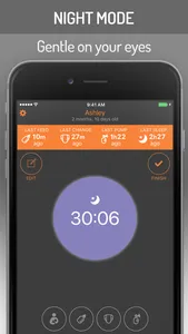 + Nursing - pause or switch sides with a single tap. See which side you last fed on.