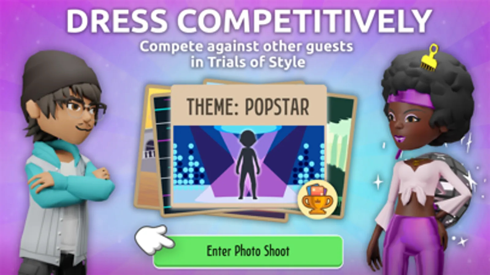 Dress to impress and stand out from the crowd with an abundance of stylish clothing, items and accessories. Customize your room with a variety of furniture items and decorations. Learn secret gestures and dance moves – and then party into the early hours inside unique public rooms!