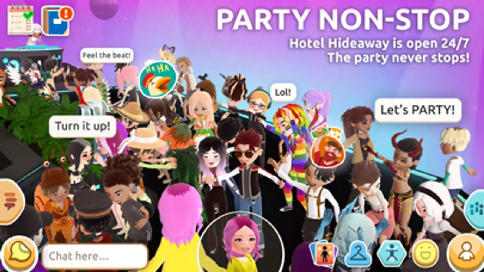 Enter the world of Hotel Hideaway: a social online 3D role-playing game full of opportunities to meet new people and make new friends. The Hotel is a lively and vibrant world full to the brim with social adventures and fun activities!