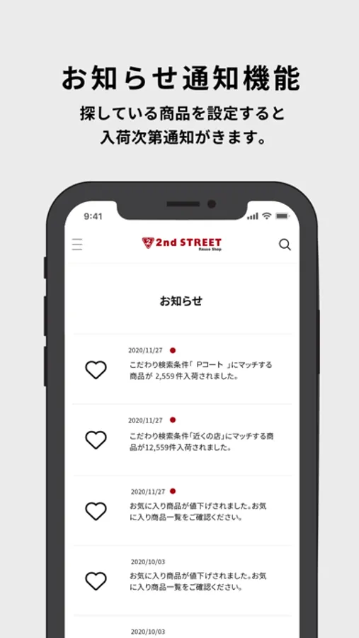 ・「こだわり検索条件」の設定で「欲しい商品」の入荷を通知します。