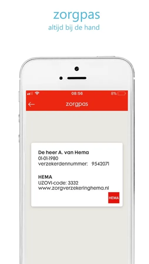 De HEMA Zorg app is compleet vernieuwd en bevat vele handige functies. Je opent de app met fingerprint of via een zelf in te stellen pincode. De declaratiefunctie is verbeterd en je hebt altijd een overzicht van jouw declaraties. Verder vind je jouw zorgpas en jouw verzekeringsgegevens terug in de app. Heb je vragen, neem dan direct contact op via de app.