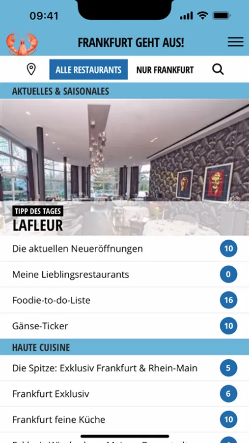 FRANKFURT GEHT AUS! – Der Restaurantführer für Frankfurt und das Rhein-Main-Gebiet jetzt in einer komplett überarbeiteten App!