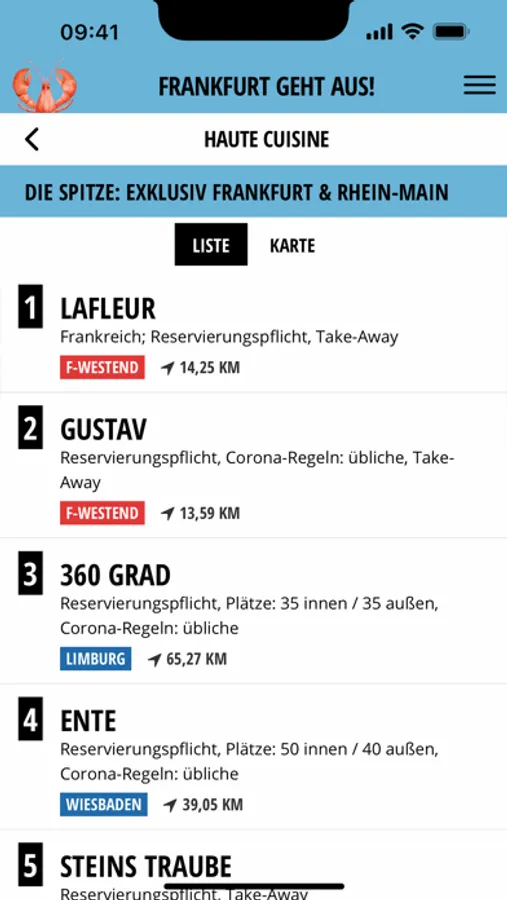 • die Codes unterhalb der einzelnen Restaurants leiten direkt auf die entsprechende Seite in der App weiter, wo Sie neben Adresse und notwendigen Infos, den Merkzettel und das Karten-Routing finden