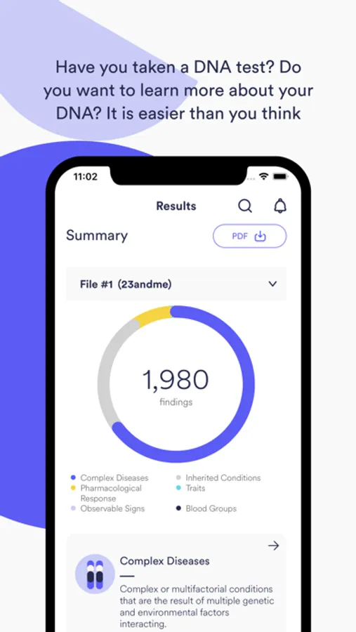 Genomapp displays information of your DNA markers in a friendly and easy to understand way. Export your personalized genetic reports to PDF and take them everywhere.