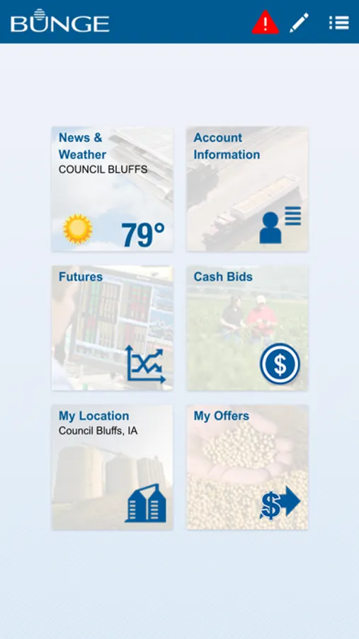 Bunge Mobile delivers news, prices and account information when you’re on the go. With the Bunge Mobile app you get secure real time access to the core functionality provided by BungeServices.com.