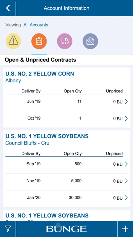 - Access your Bunge account information to see your open contracts, recent shipments and recent payments.