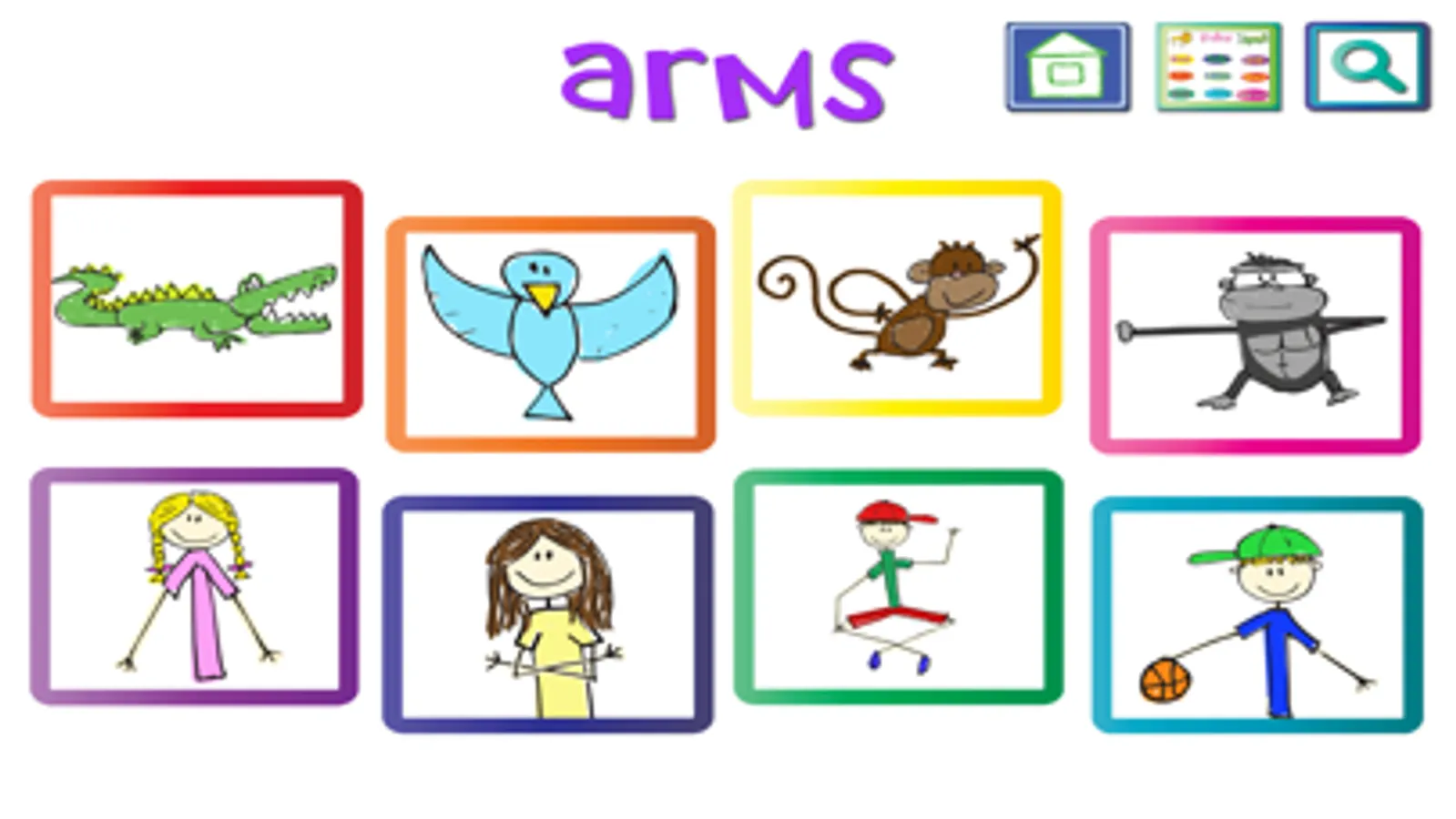 Tap each picture repeatedly to watch the animation come to life. This app is a fun way to keep your child entertained, engaged, and active! Your child will delight in his or her favorite animations and will want to revisit them over and over again.