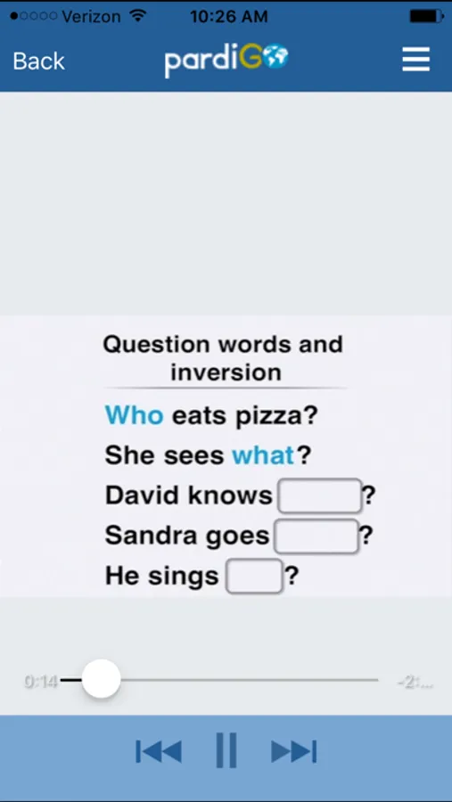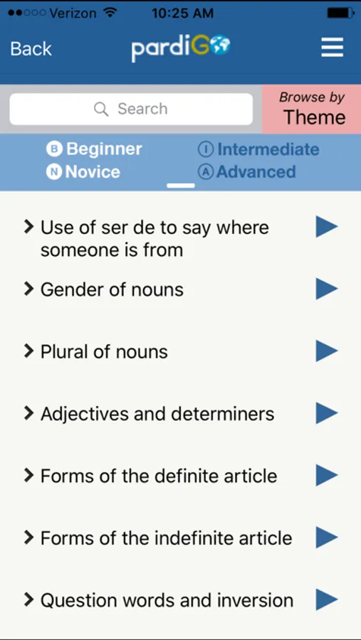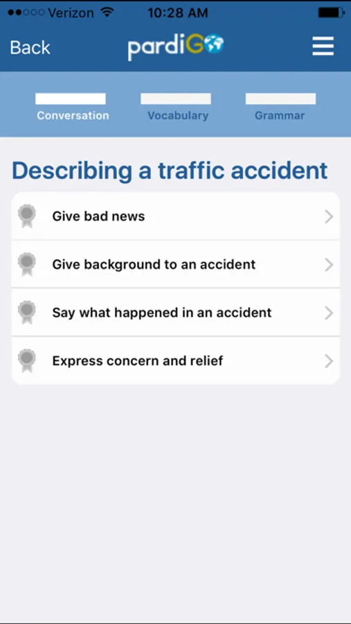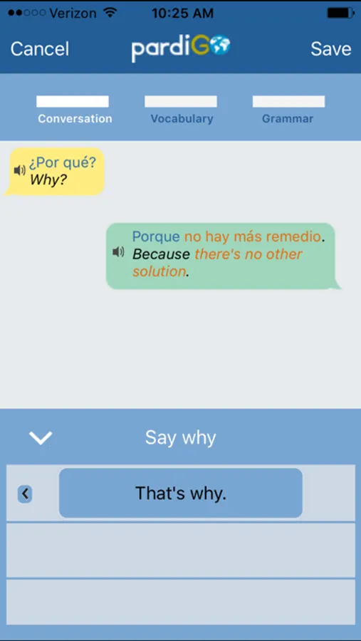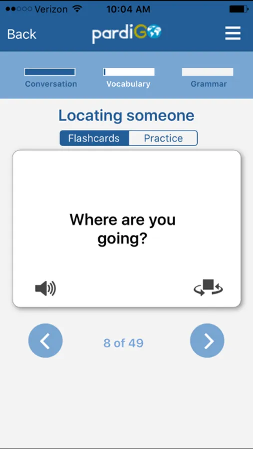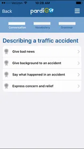 Pardigo is a new concept in language learning that lets you say what you want. Forget about rote memorization. Pardigo’s “builder” feature gives you the words and phrases you need when you need them. Build your own conversation. Once built, Pardigo delivers lessons that teach you the grammar and vocabulary that make up your conversation. But no matter how much you choose to study, you’ll always have the script of your conversation and accompanying audio so you can practice wherever you are.