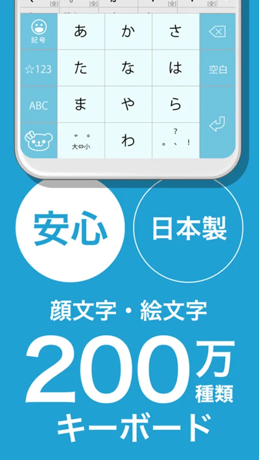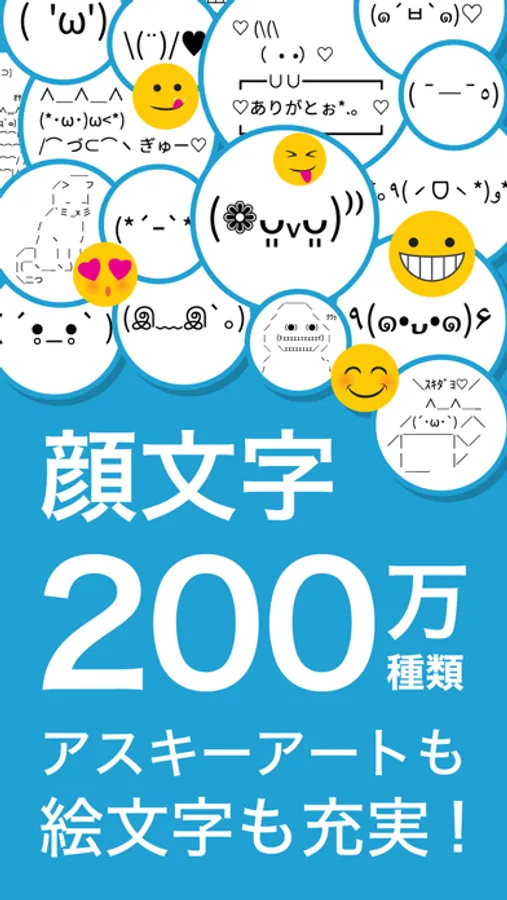 顔文字機能:100万種の顔文字やアスキーアートから気持ちにあったものを検索して使えます(みんなの顔文字辞典の顔文字がそのまま使えます)