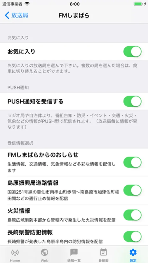 また、災害や防犯・交通・インフラ・イベントの情報など、いわゆる地域情報をPUSH型で配信する機能を有しています。なお、各情報の配信内容は、放送局毎に異なりますのでご留意下さい。