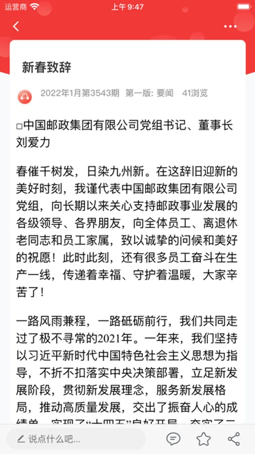 此应用仅面向中国邮政报订阅用户,与报纸同步发行,随时随地了解业内最新资讯。