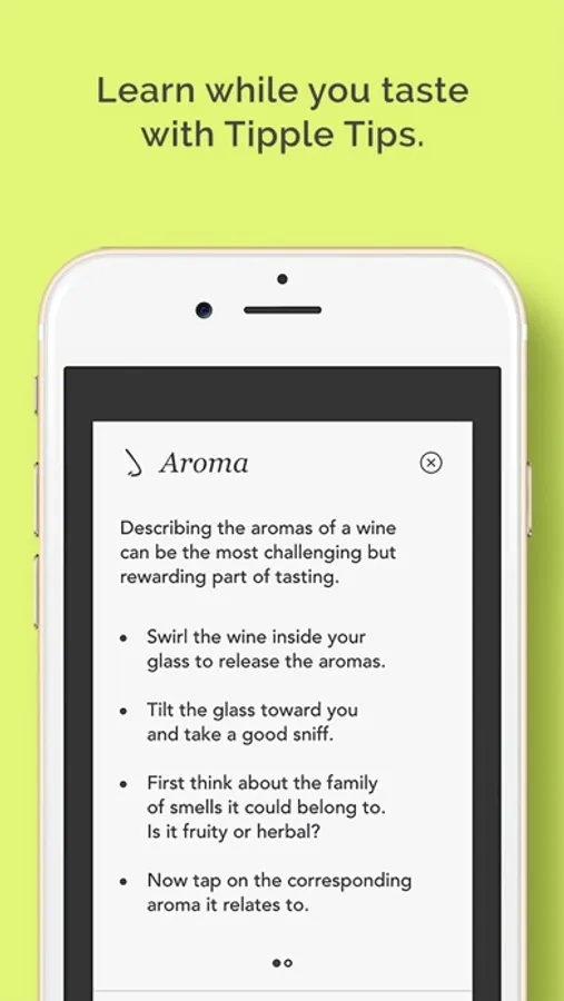 It's easy to get bamboozled with the jargon used in wine tastings - Tipple Tips is there to help every step of the way. Not sure of the words to use or worried you'll say something silly? Tipple takes out the guesswork and gives you a full range of industry vocabulary, right there on screen to pick from.