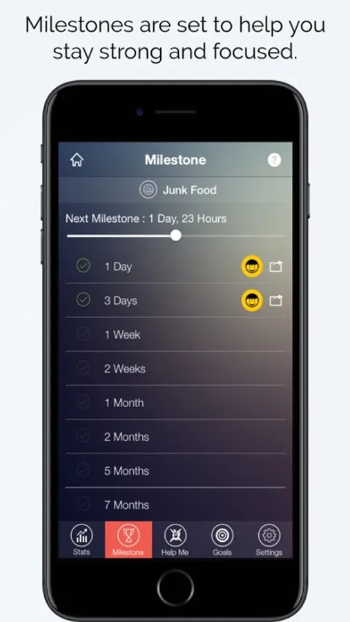 Set warning times for your usually craving times and we will send you a reminder to stay strong and keep you on track.