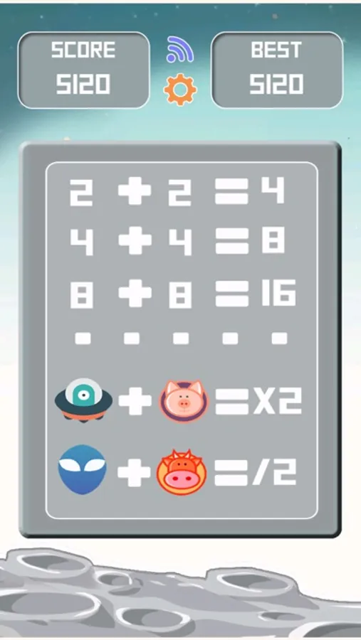 Swipe with your fingers to move numbers between tiles. Numbers will be merged when two tiles with the same number met. Surprisingly, when UFO receive the animal, the numbers will double up .