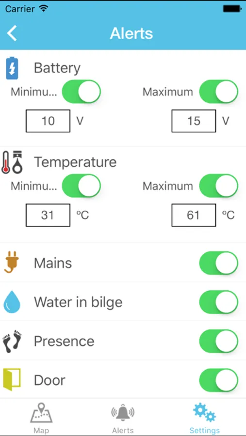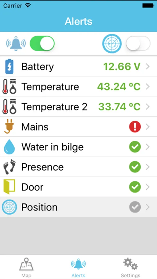 ·Receive alerts on the state of your boat: door opening alert, detection of intruders, temperature of the engine, detection of water in bilge, etc.