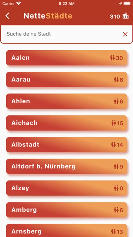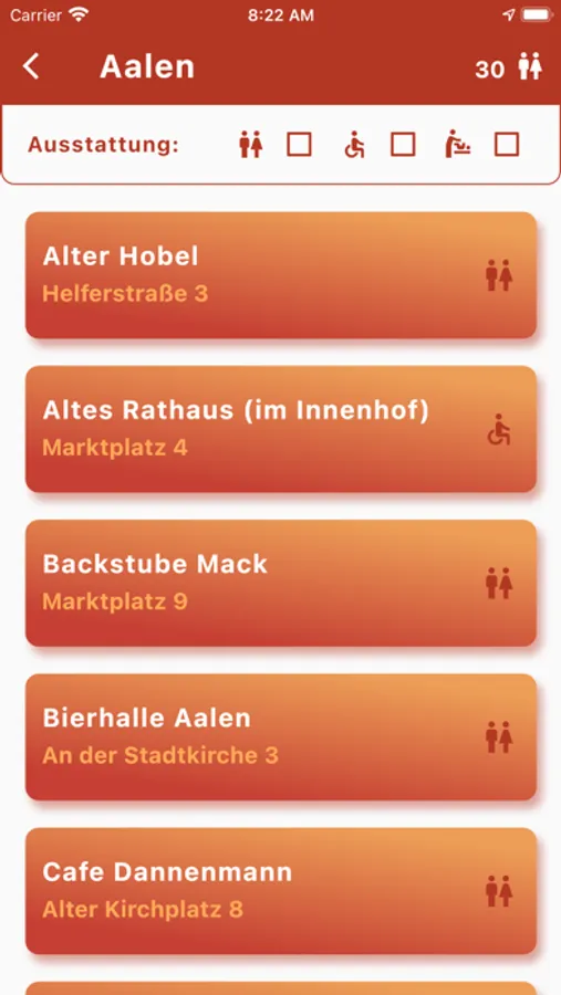 - Vollständige Liste aller Orte, an denen es eine Nette Toilette gibt.