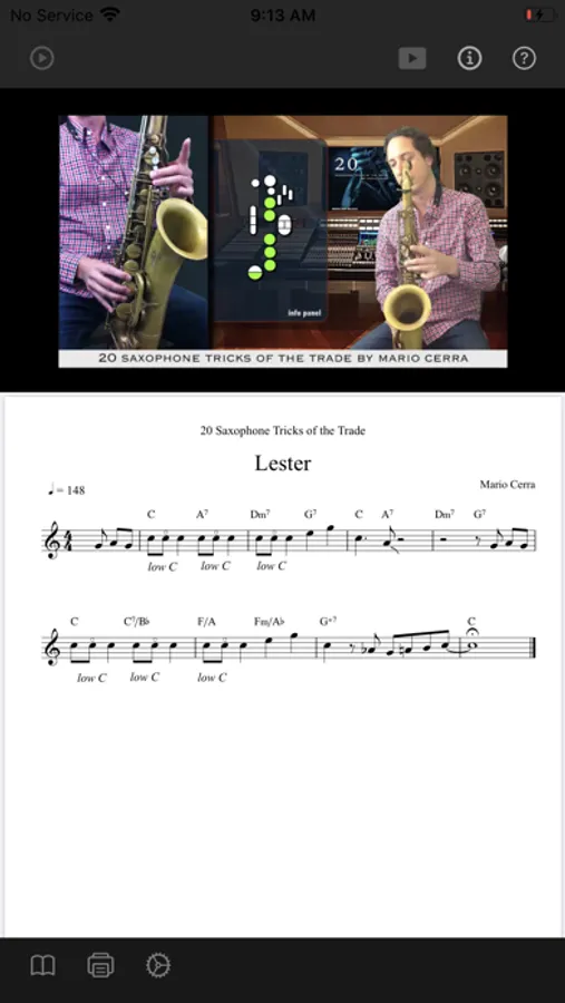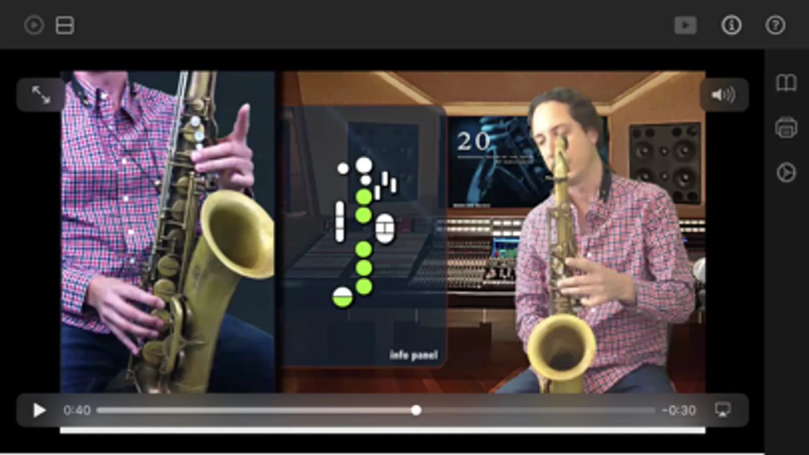 From saxophone technique to improvisation, multiphonics, effects and articulation, this app will keep you busy for a long time. Options include all PDF files and audio tracks needed for soprano, alto, tenor and baritone saxophones, as well as videos and demonstrations in English and Spanish.
