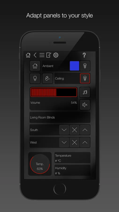 LiVo offers a variety of customizing features: you can individualize the user interface with your own style preferences or use one of the provided stylesheets. The new dynamic panels are automatically generated out of your HomeKit room and scenes configuration or out of the given openHAB sitemap.