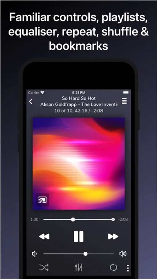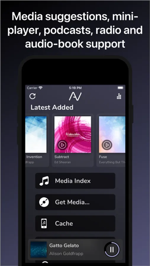 Connect AVSub to your licensed SubSonic server and you'll have access to your entire media collection. AVSub supports any audio format that SubSonic supports and SSL.