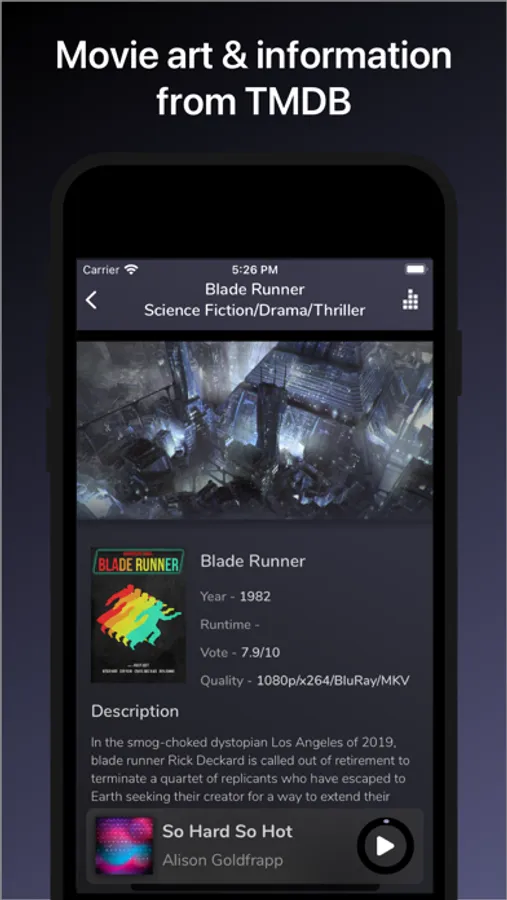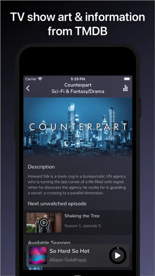 AVSub shows enhanced information for your media, recognising movies, TV, artists and giving bio information, top tracks and similar artists.
